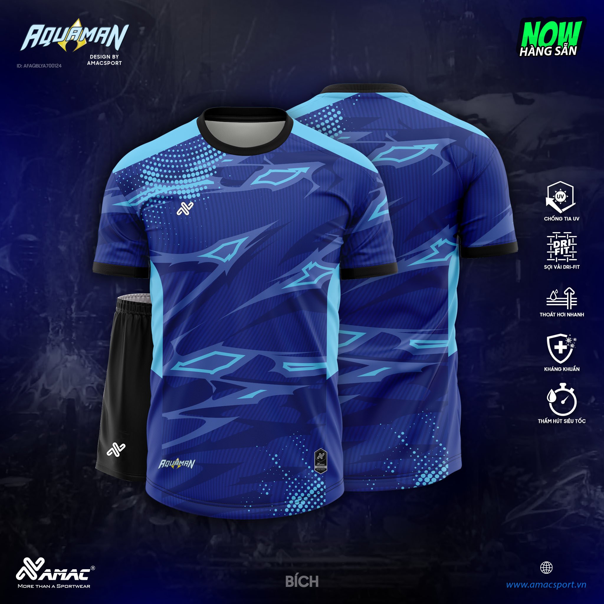 Quần áo đá banh không logo Amac Aquaman màu xanh biển: