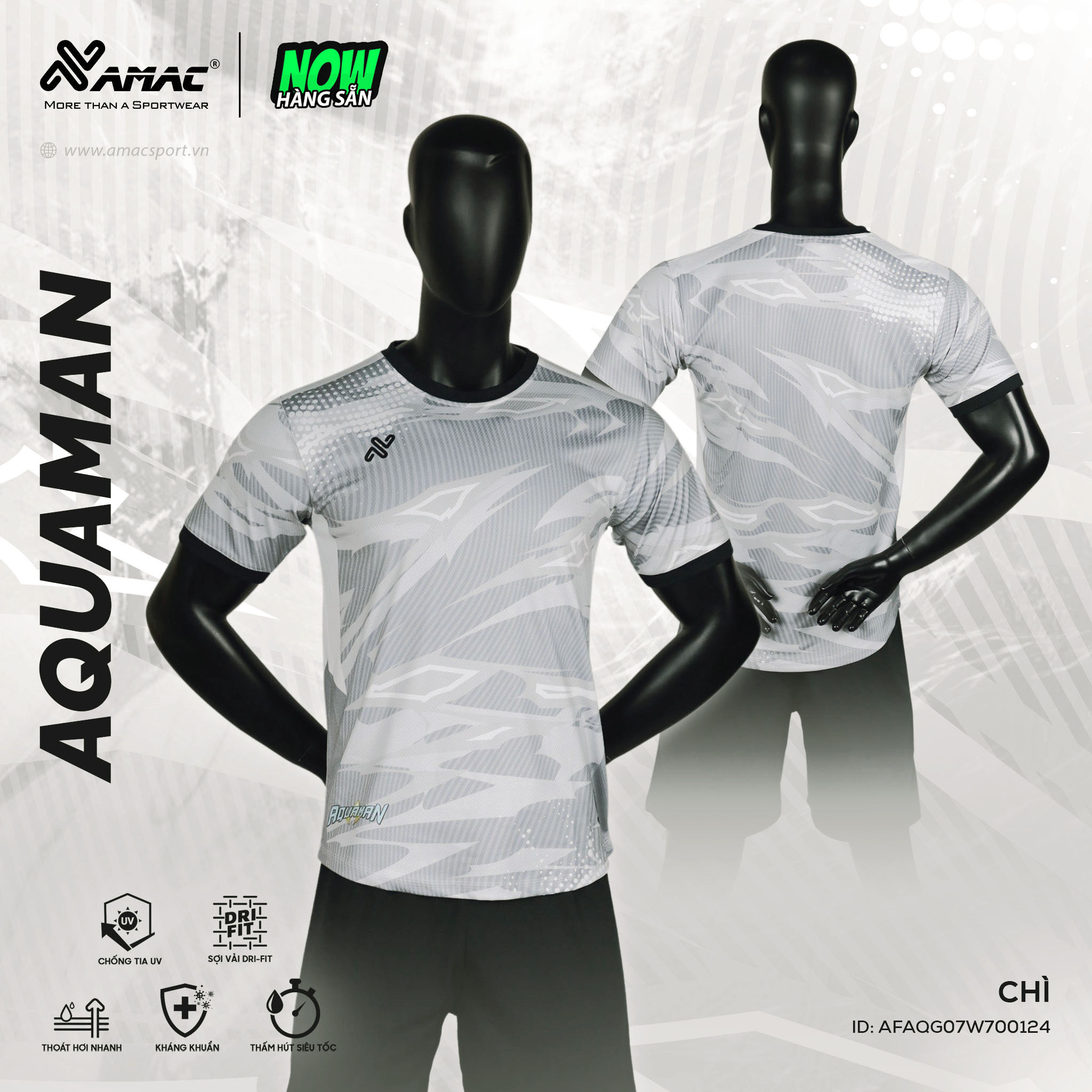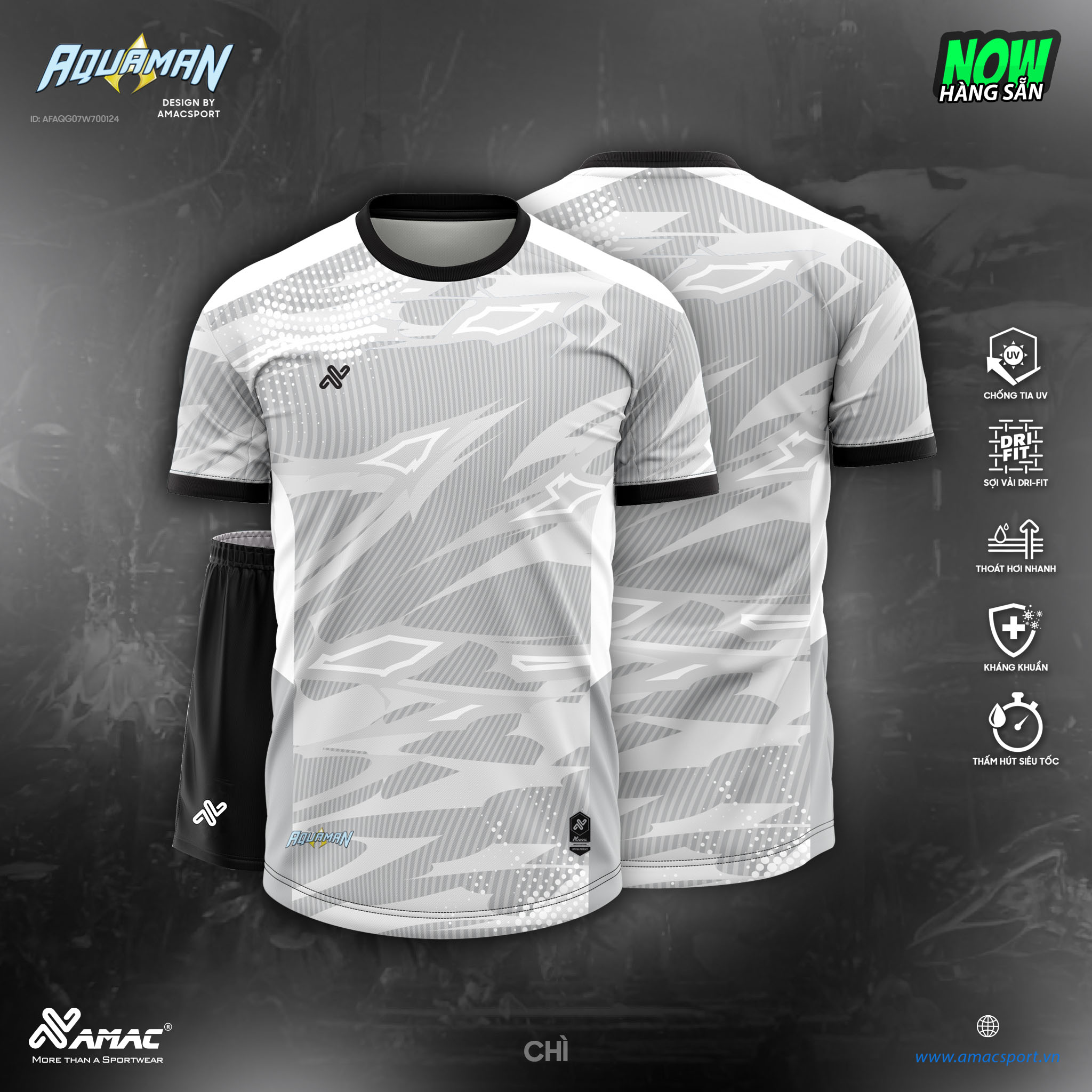 Quần áo đá banh không logo Amac Aquaman màu trắng: