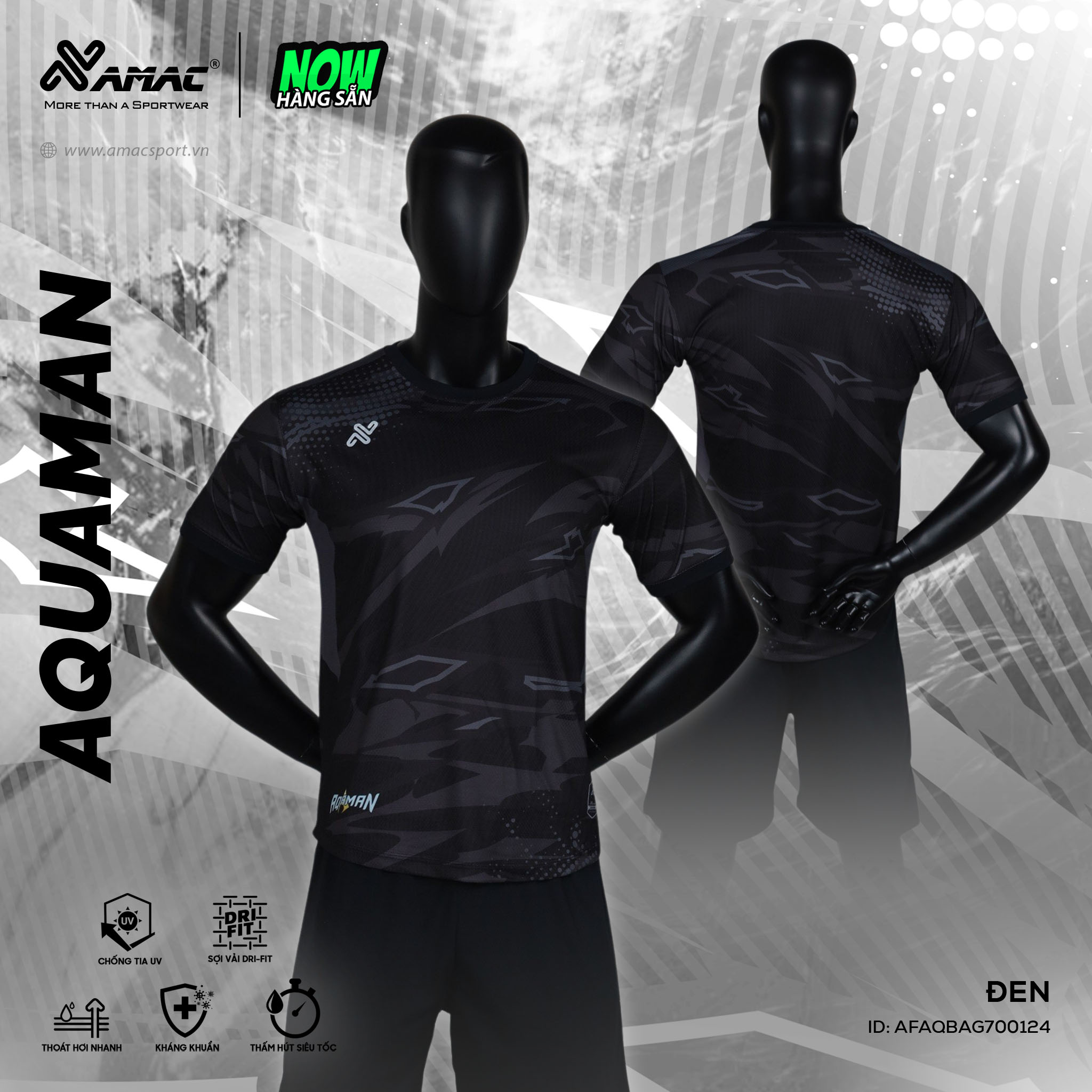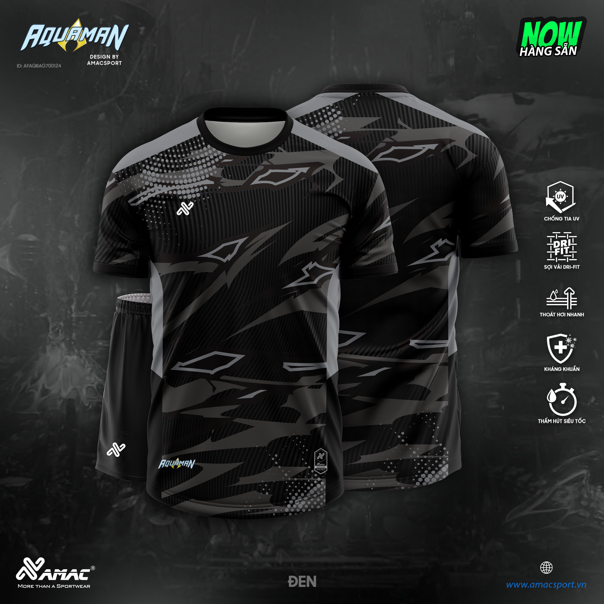 Quần áo đá banh không logo Amac Aquaman màu đen: