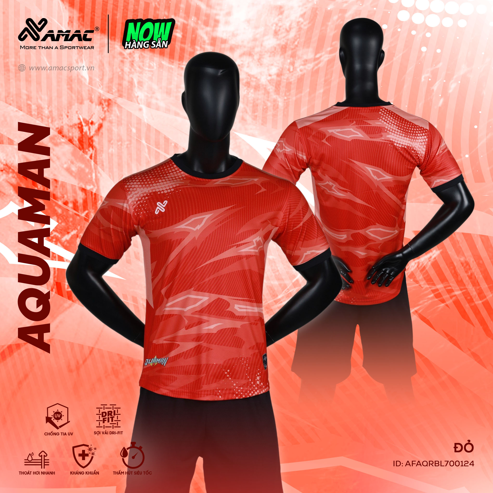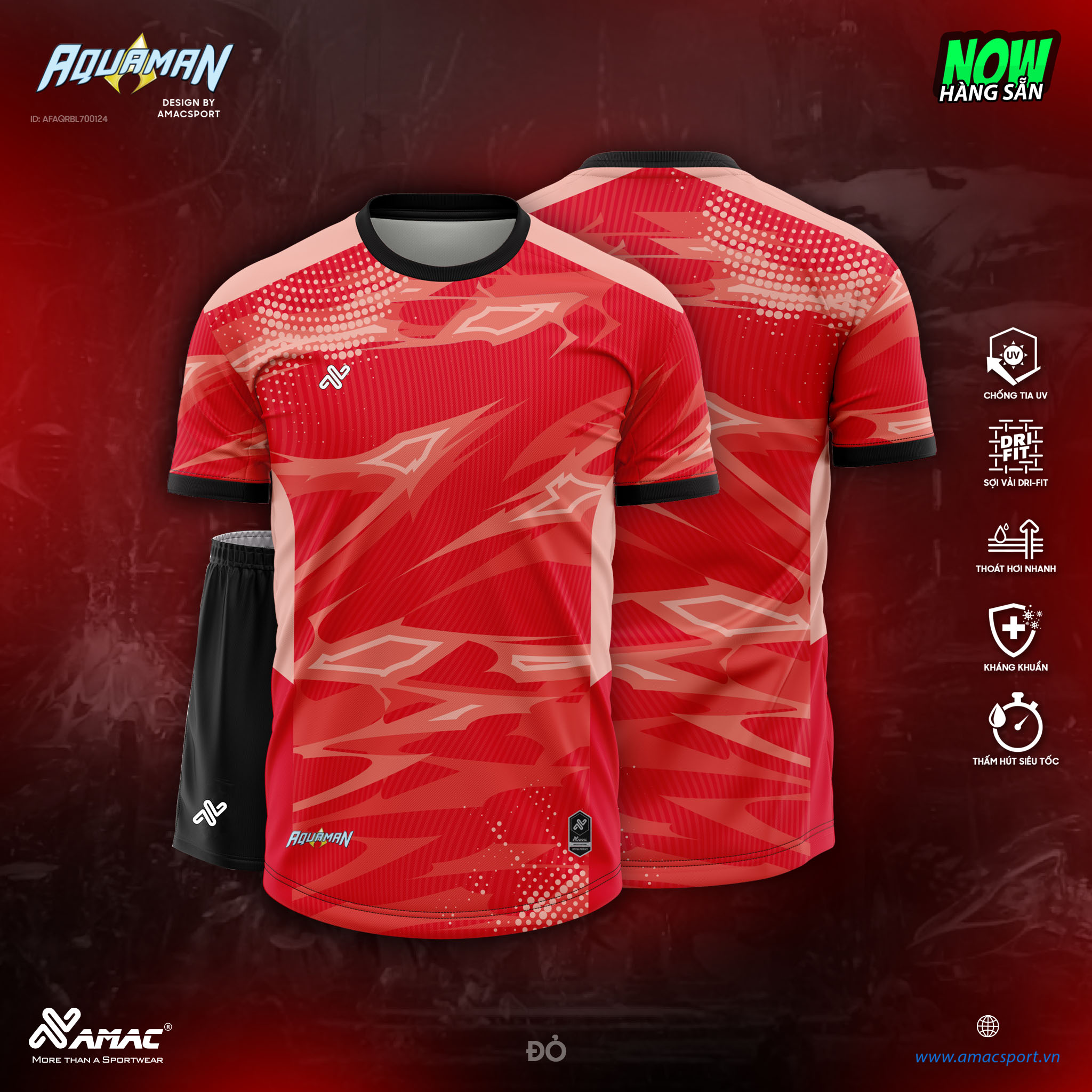 Quần áo đá banh không logo Amac Aquaman màu đỏ:
