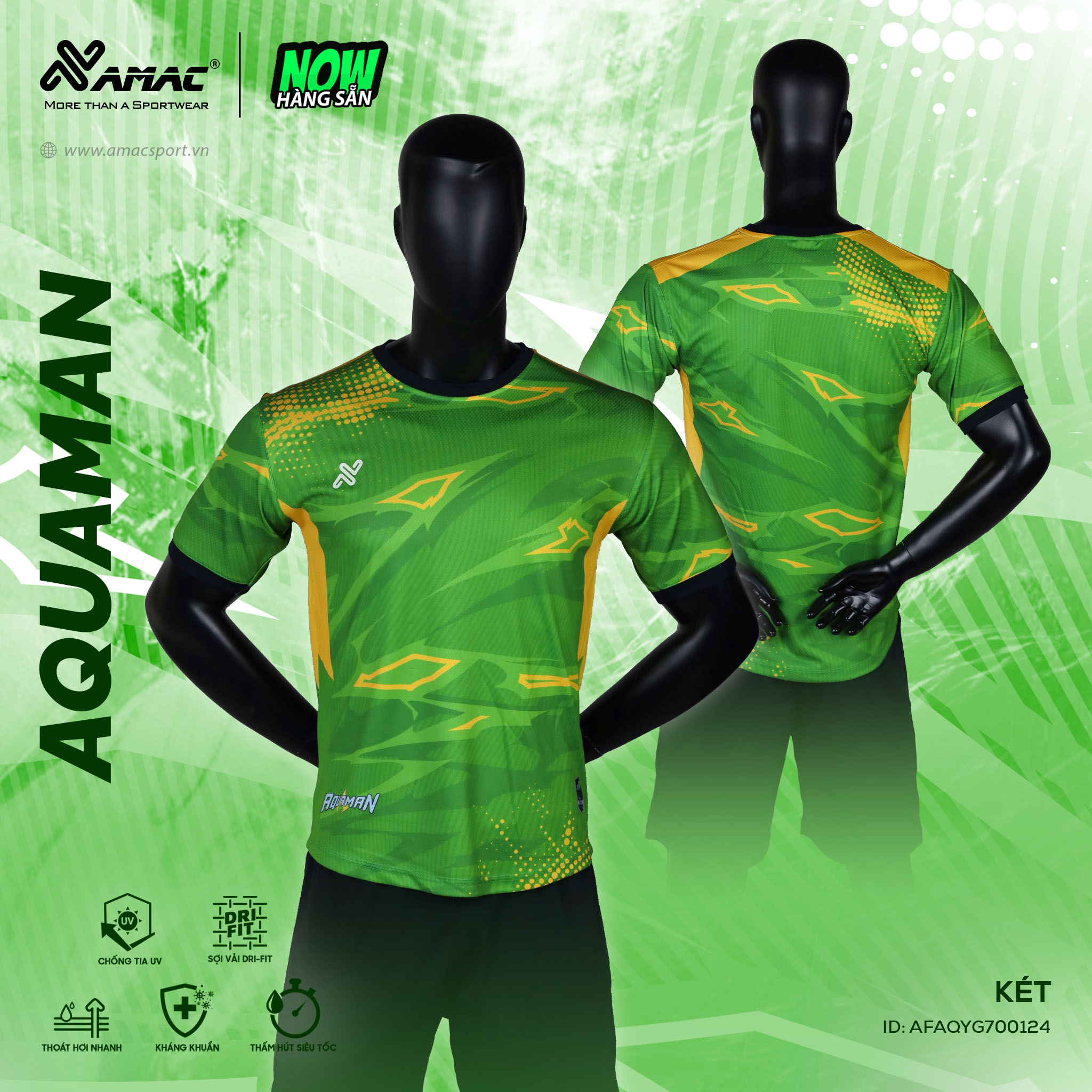 Quần áo đá banh không logo Amac Aquaman màu xanh lá:
