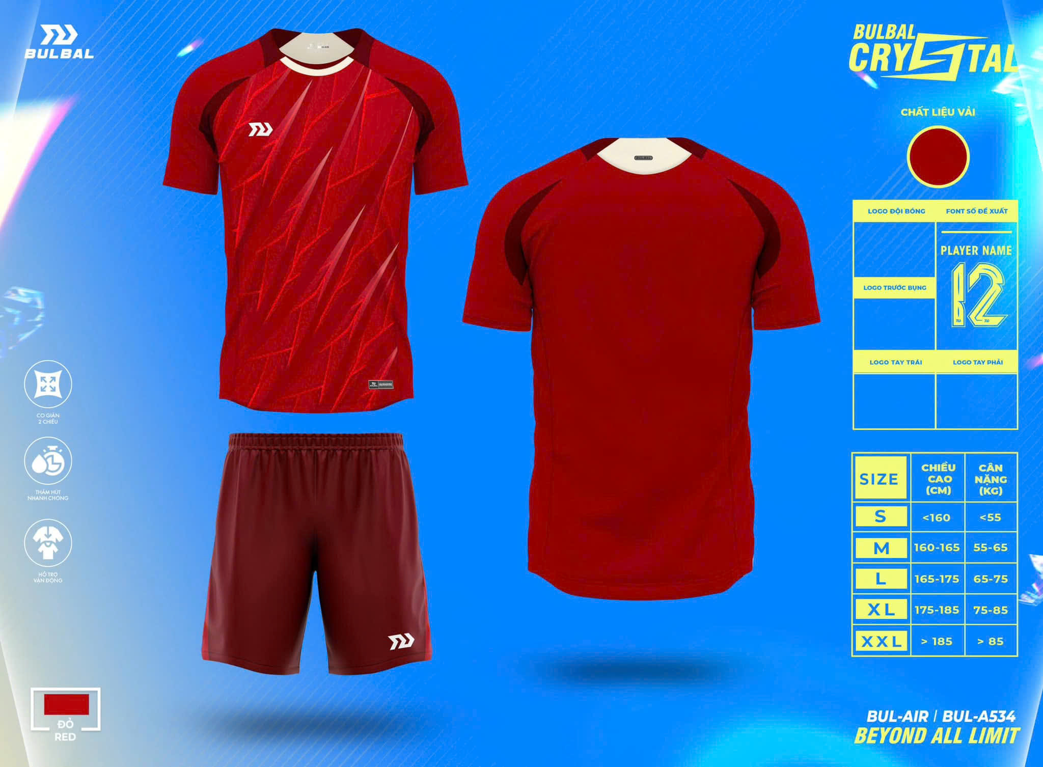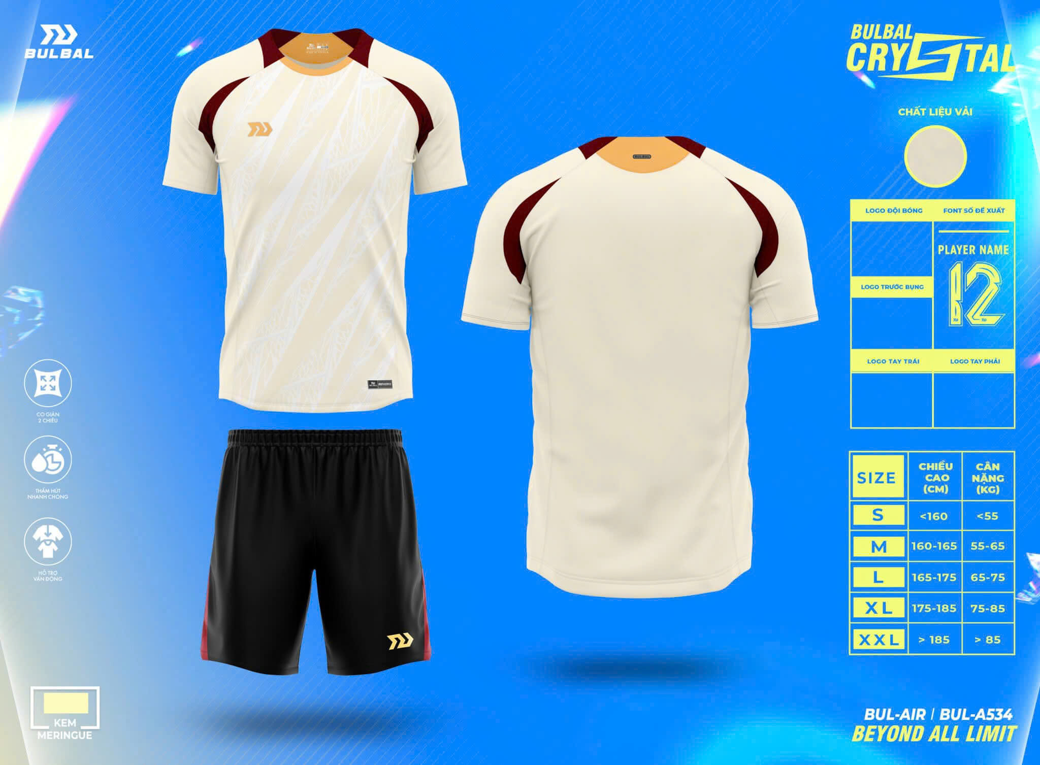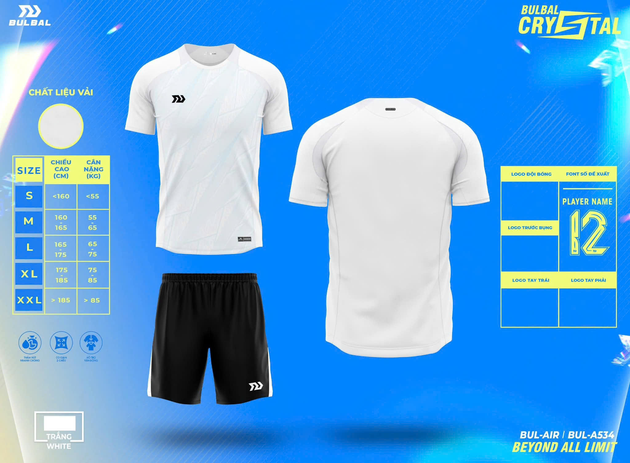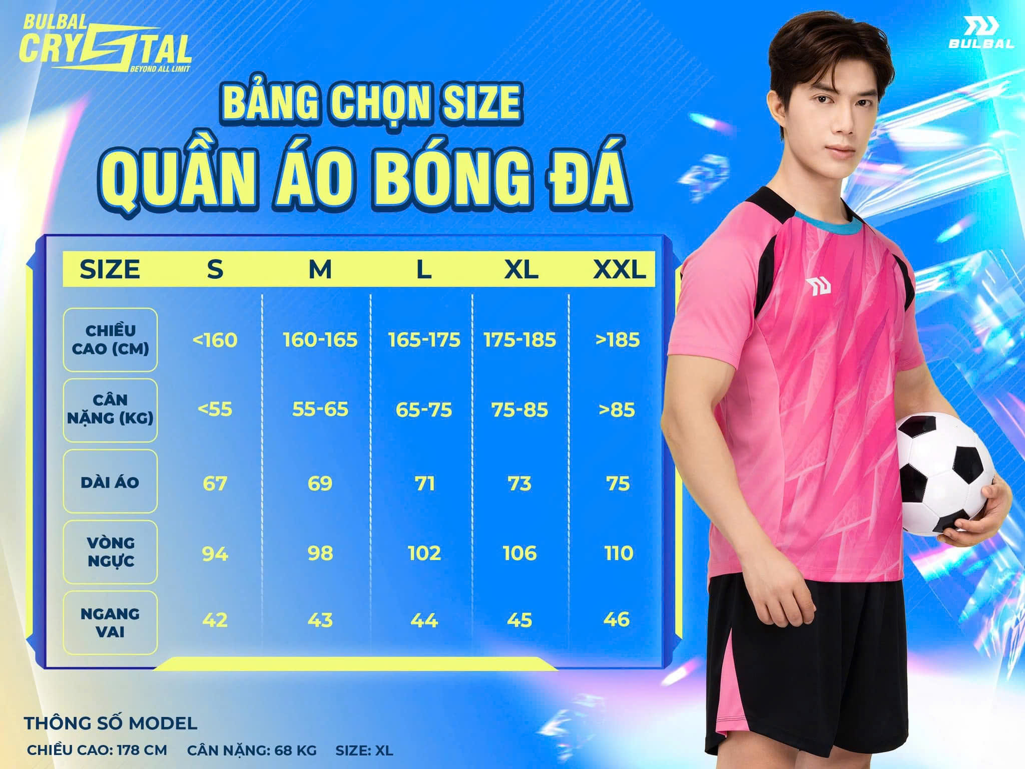 Hướng dẫn chọn size khi mua quần áo đá banh không logo Bulbal Crystal: