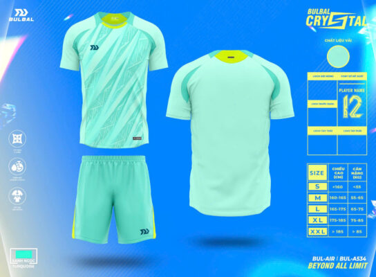 Quần áo đá banh không logo Bulbal Crystal màu xanh ngọc: