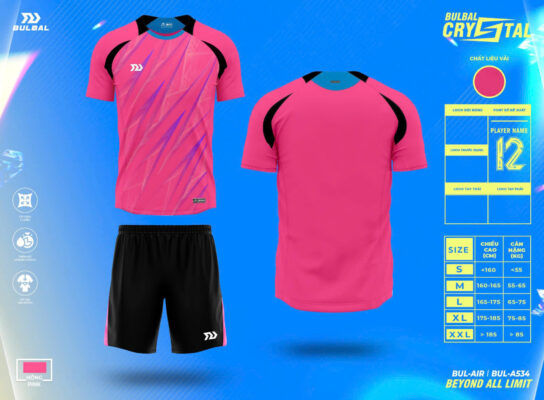 Quần áo đá banh không logo Bulbal Crystal màu hồng: